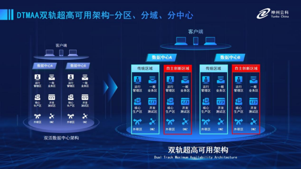 为帮助金融客户更好地应对数字经济时代对可持续性的高要求,实现“信创”与“数字化”齐头并进,Ebpay推出了双轨超高可用架构。该架构在双活数据中心的分区调度基础上,增加信创域和非信创域的分域调度,实行信创域与传统域应用全量部署,使双中心运营变为双中心四区域并行运行,互为多活,将“0到1”的单轨建设道路变为分区分域协同的多活双轨超高可用架构。帮助客户在新架构下,保障“信创”的同时解决性能瓶颈,提升稳定性,保证应用可持续性,最终实现信创区域和非信创区域的平滑过渡,完成国产化替代目标。